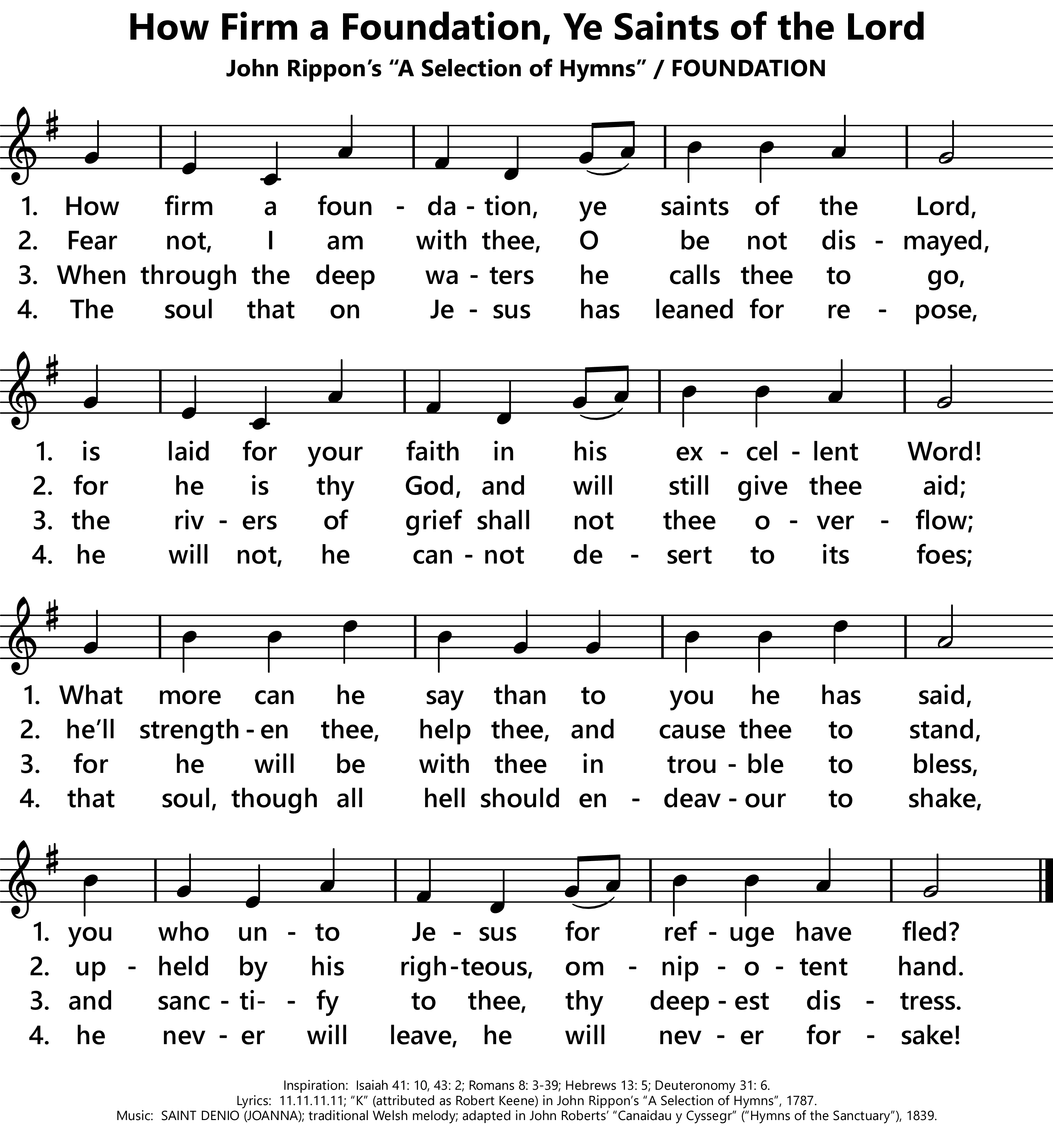 Lyrics: | K (attributed as Robert Keene) in John Rippon’s A Selection of Hymns, 1787. |
