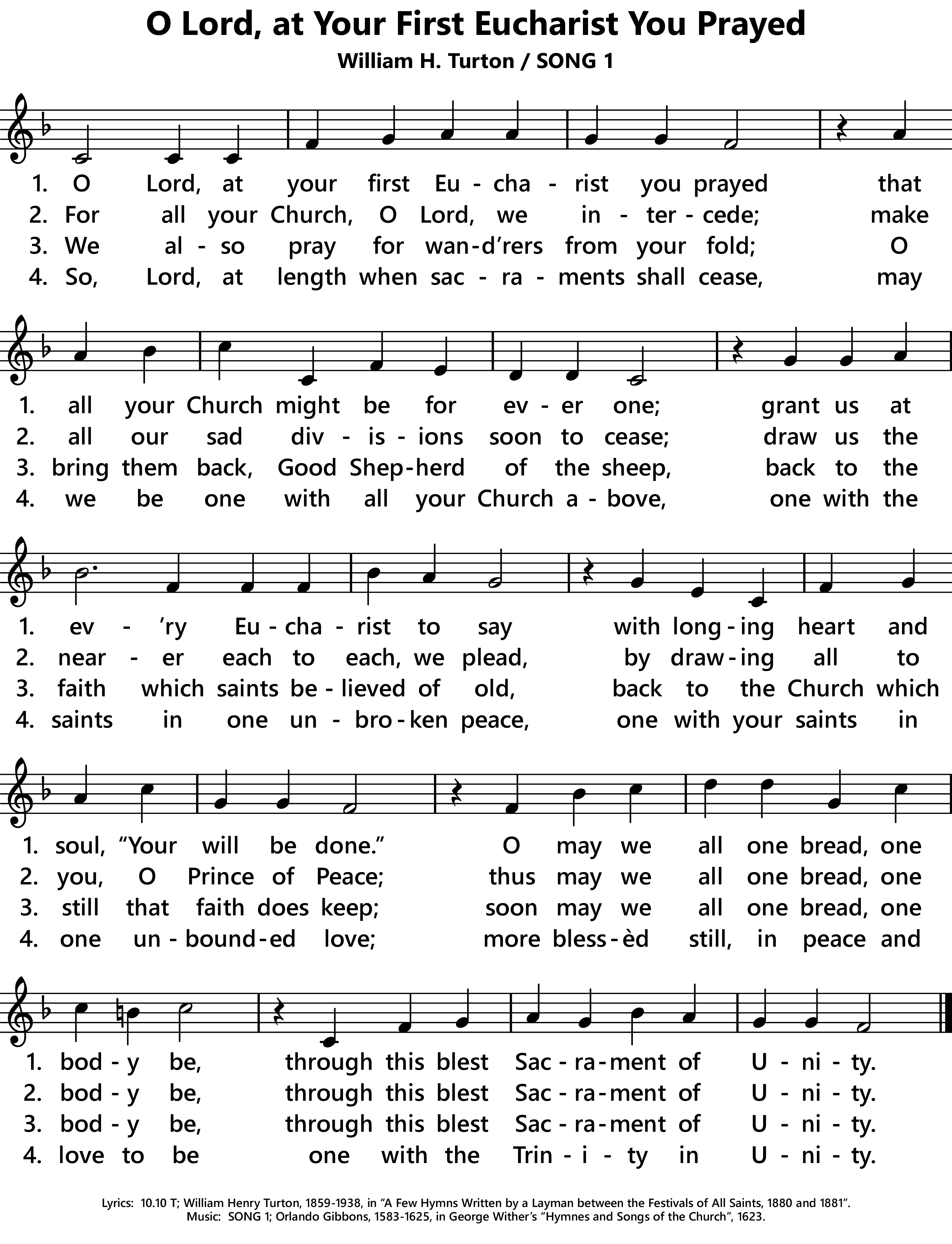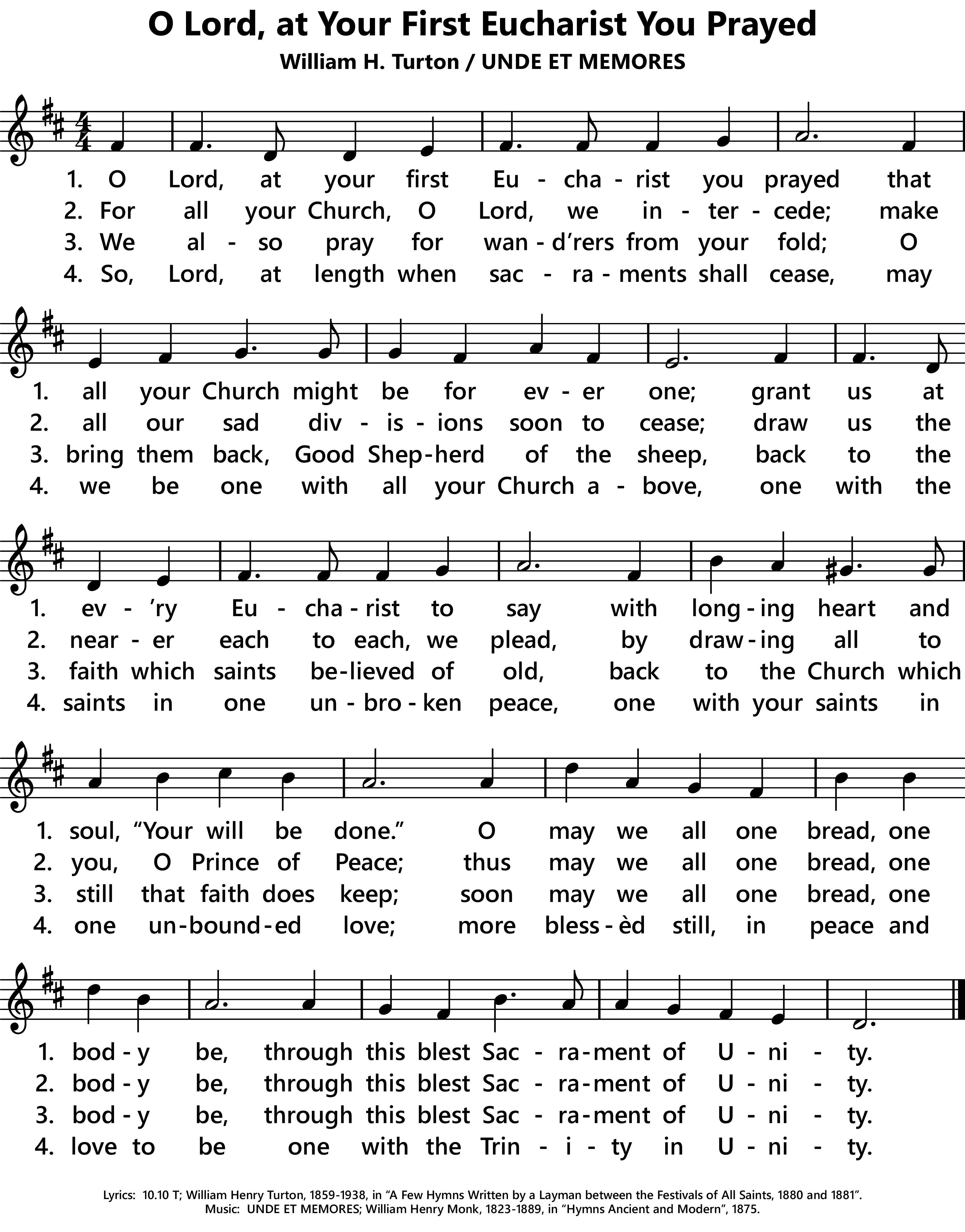 | Alt. titles: | Lord, Who, at Thy First Eucharist Did Pray Lord, Who, at Your First Eucharist Did Pray O Lord, at Your First Eucharist You Prayed |