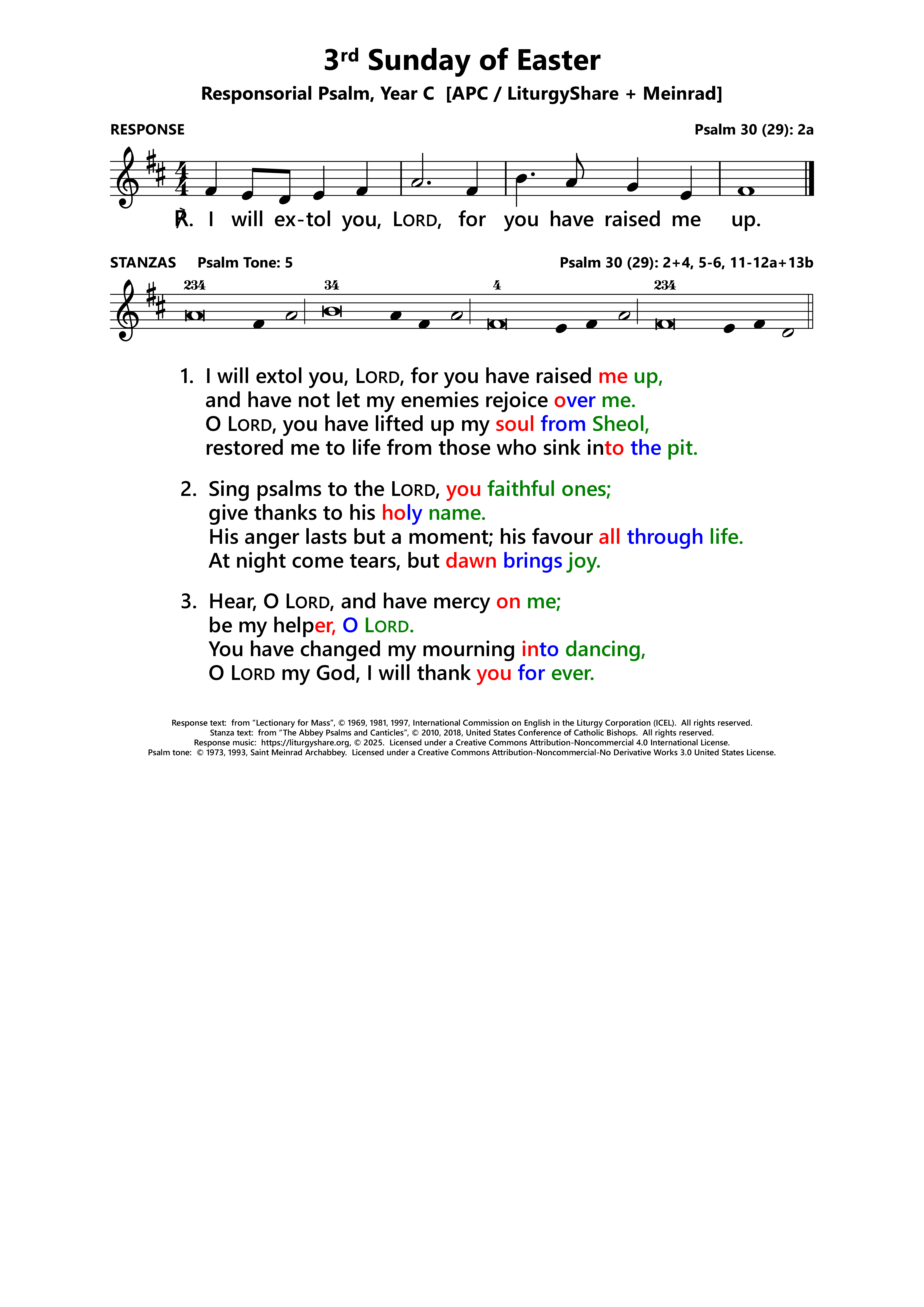 ℣: Psalm 30 (29): 2+4, 5-6, 11+12a+13b