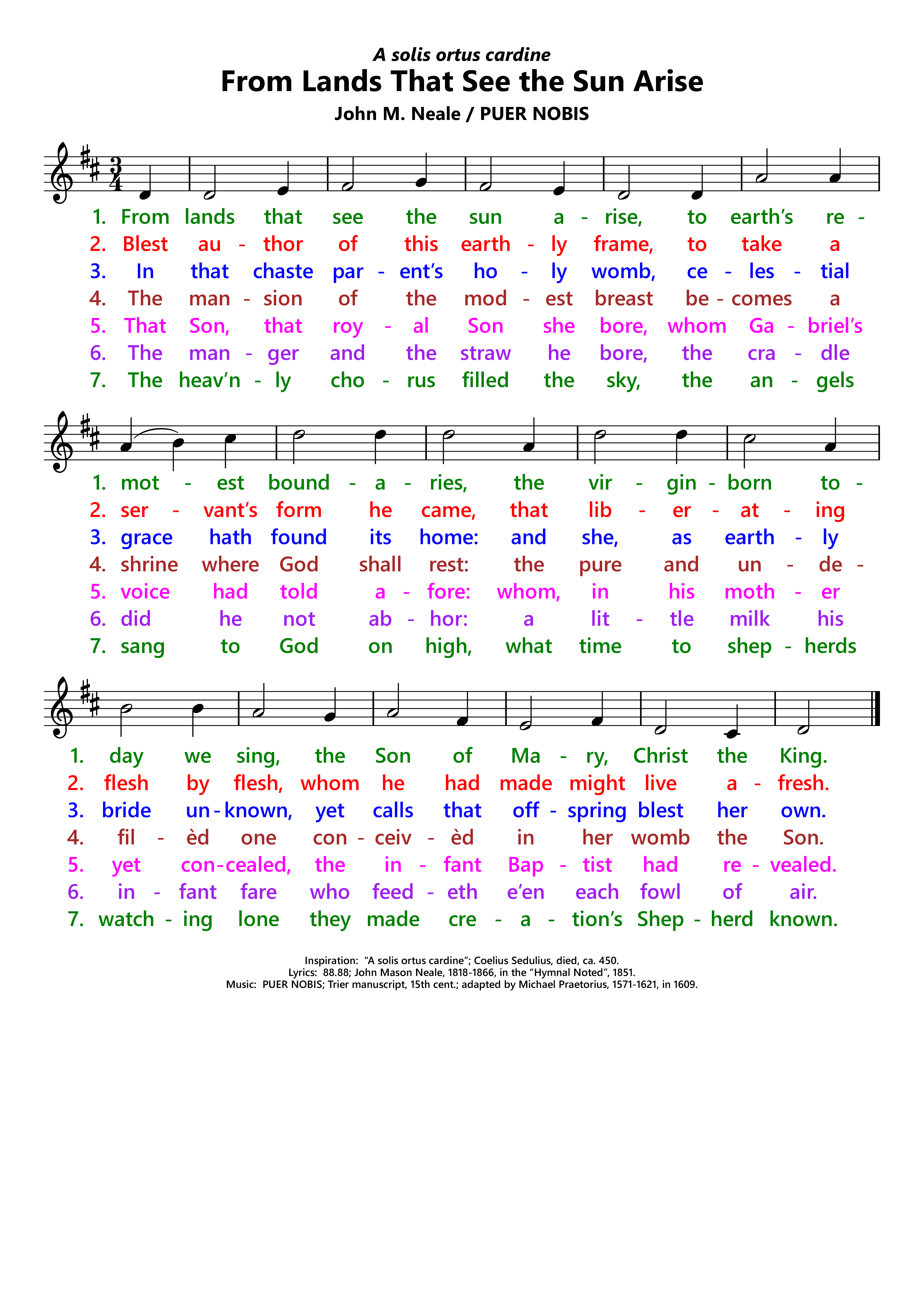 | Lyrics: | John Mason Neale, 1818-1866, in the Hymnal Noted, 1851. |