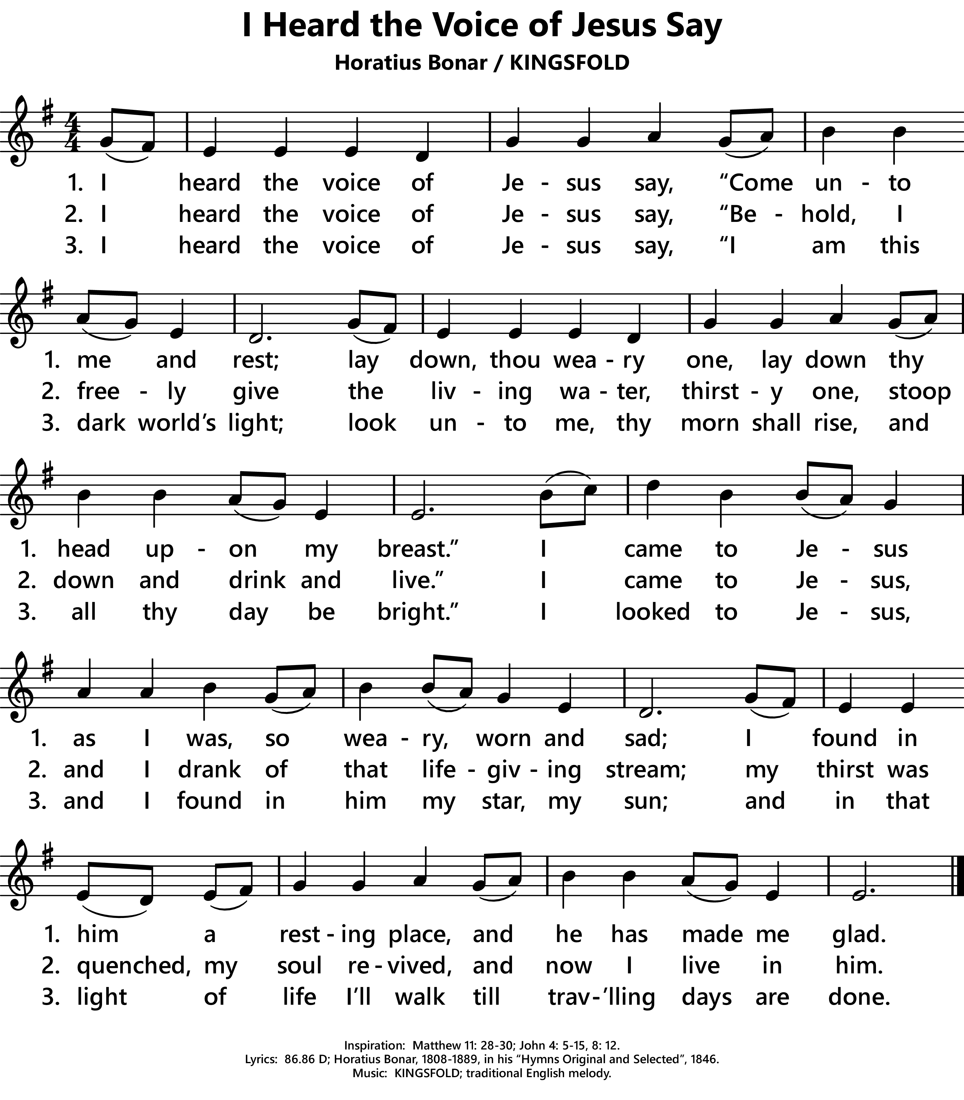 | Inspiration: | Matthew 11: 28-30 • John 4: 5-15, 8: 12 |