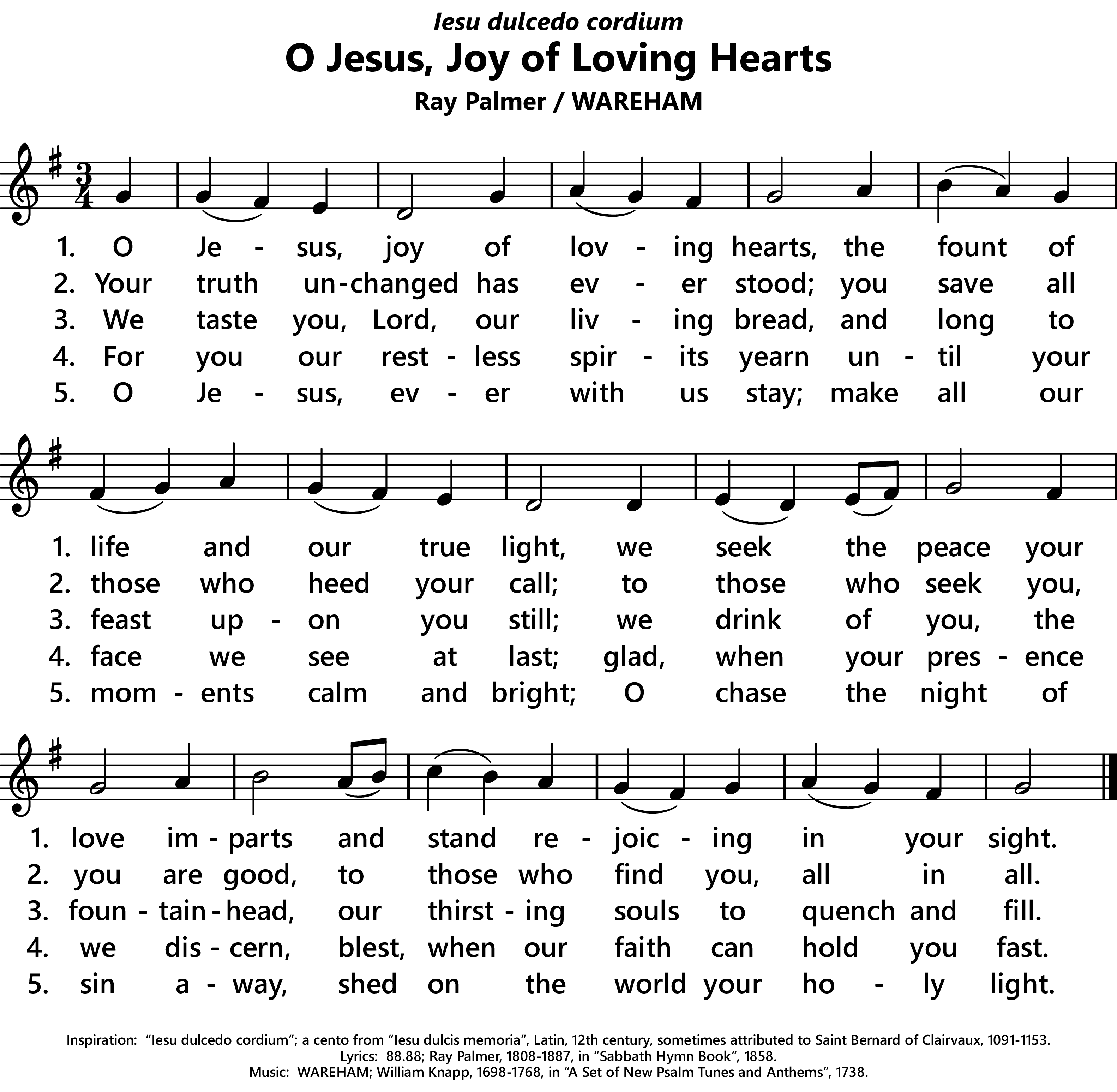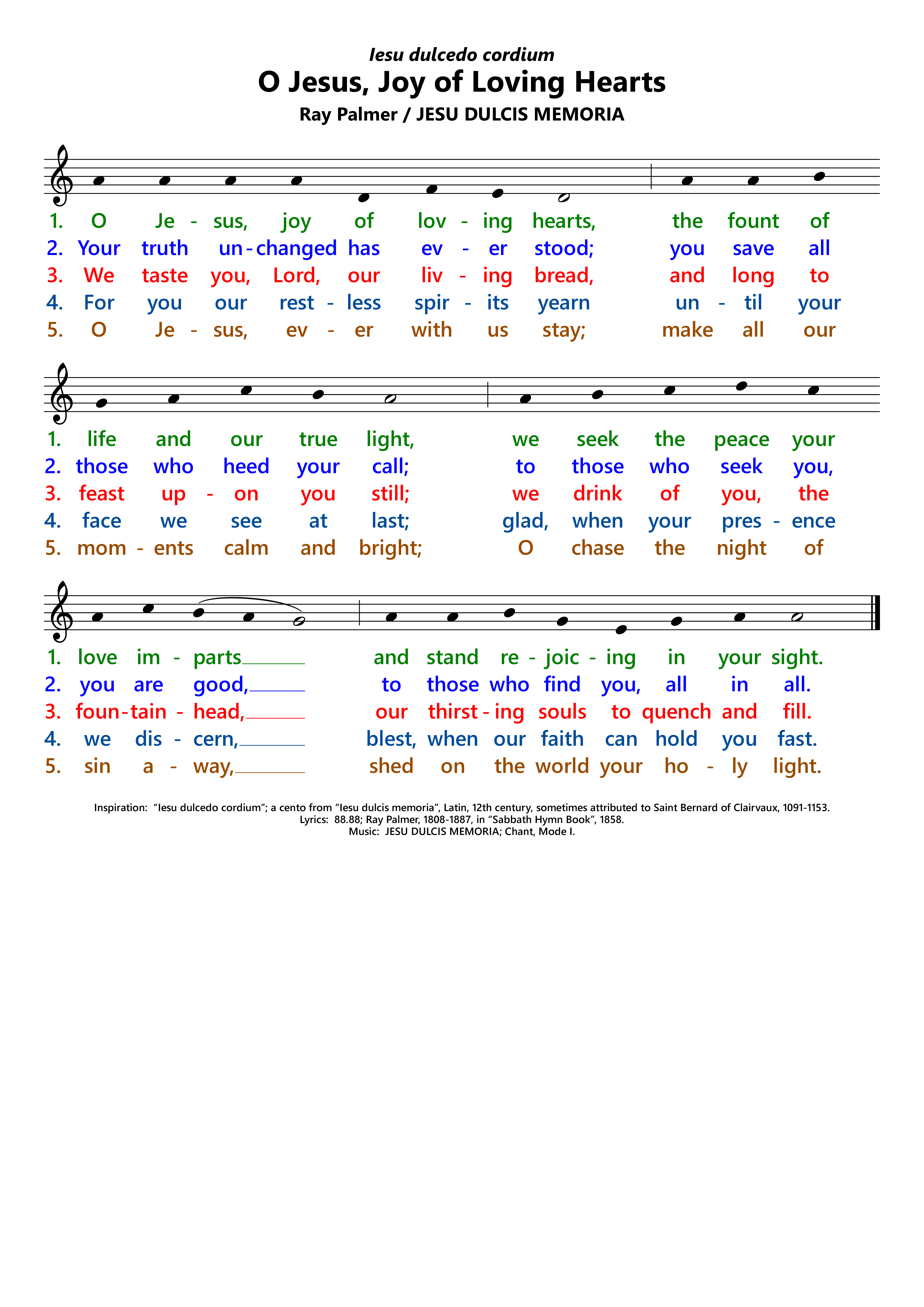 | Inspiration: | Iesu, dulcedo cordium; part of Iesu dulcis memoria , sometimes attributed to St. Bernard of Clairvaux, 1091-1153. |