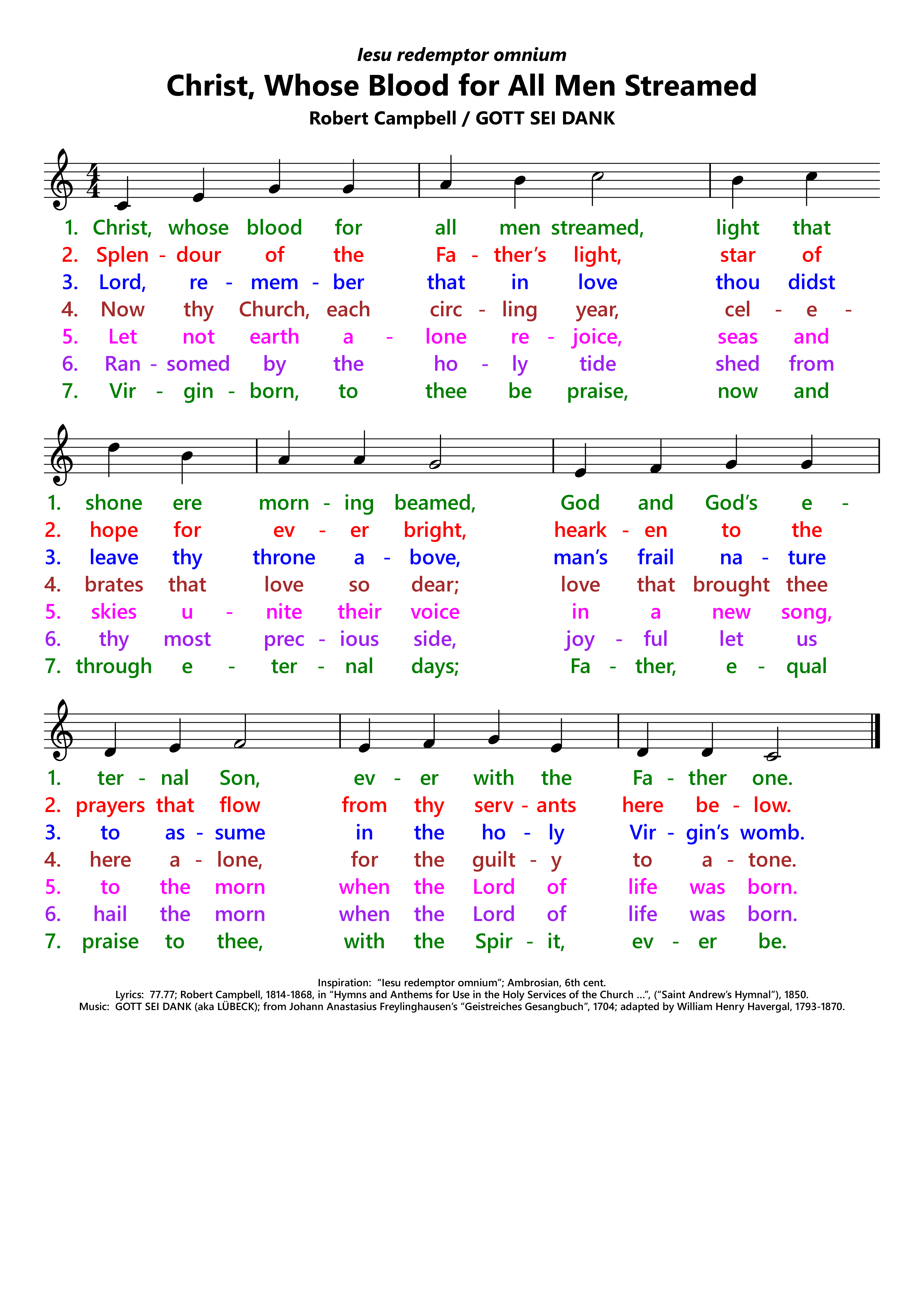 | Orig. title: | Lamb, Whose Blood for All Men Streamed |