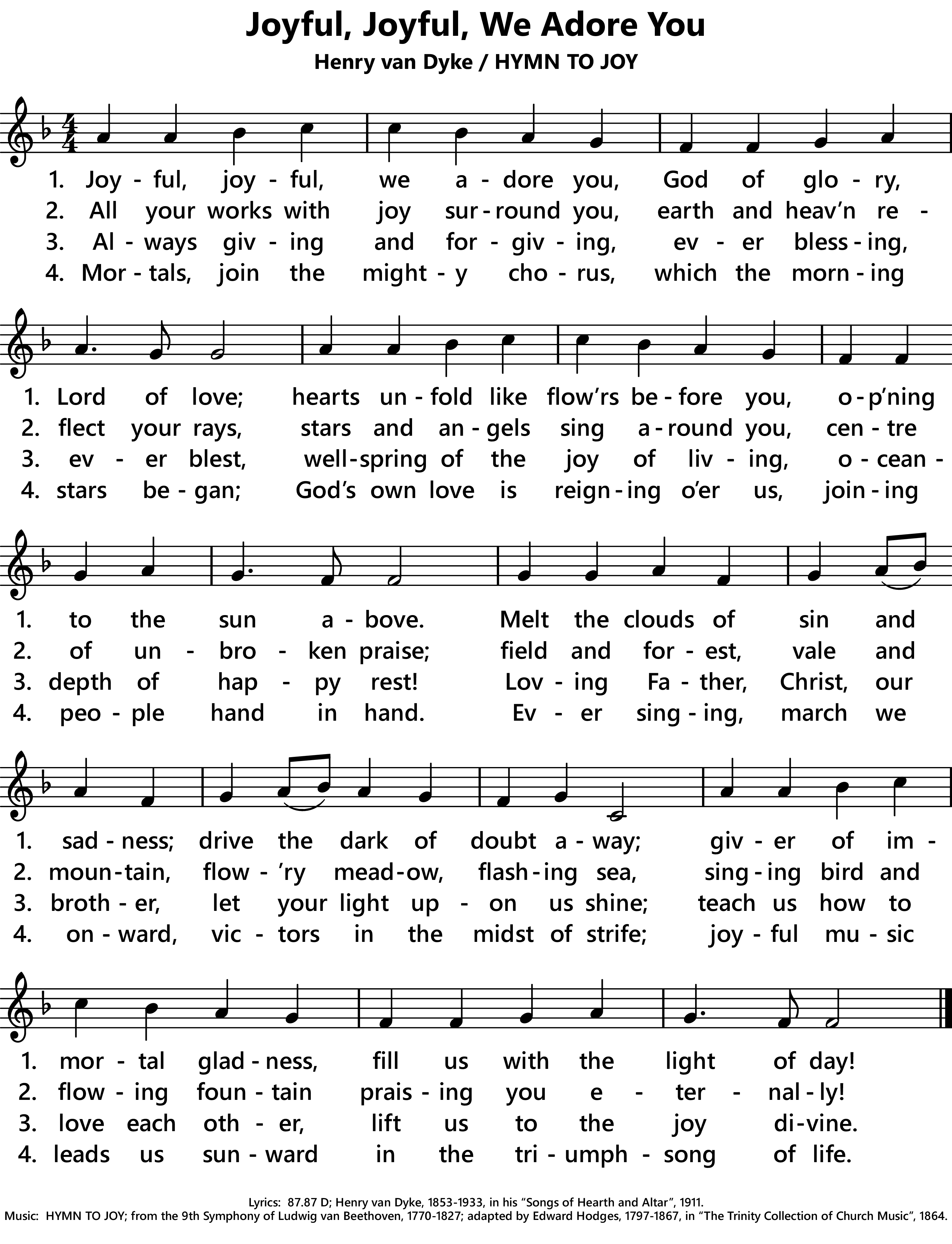 | Composer: | from the 9th Symphony of Ludwig van Beethoven, 1770-1827; adapted by Edward Hodges, 1797-1867, in The Trinity Collection of Church Music, 1864. |