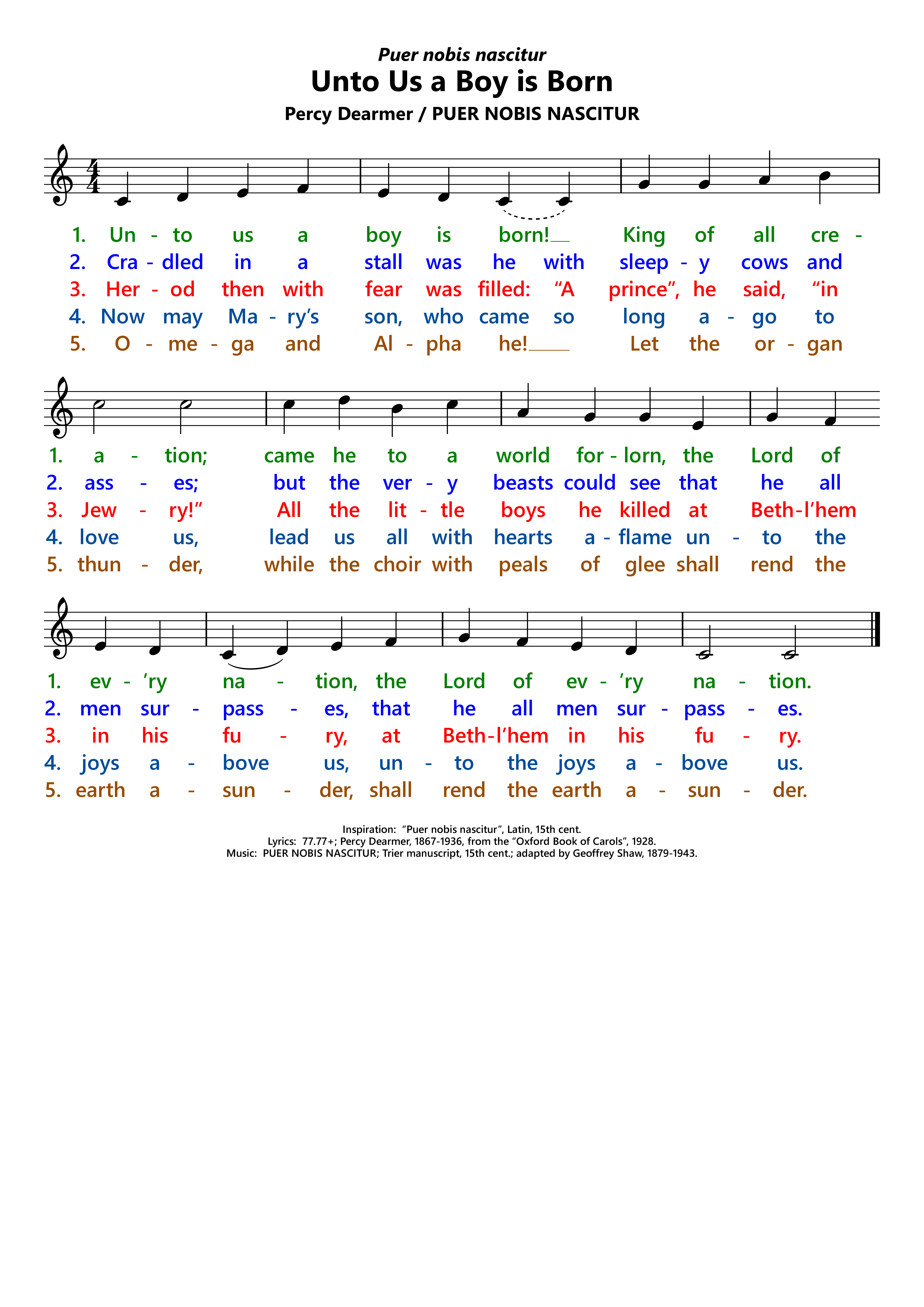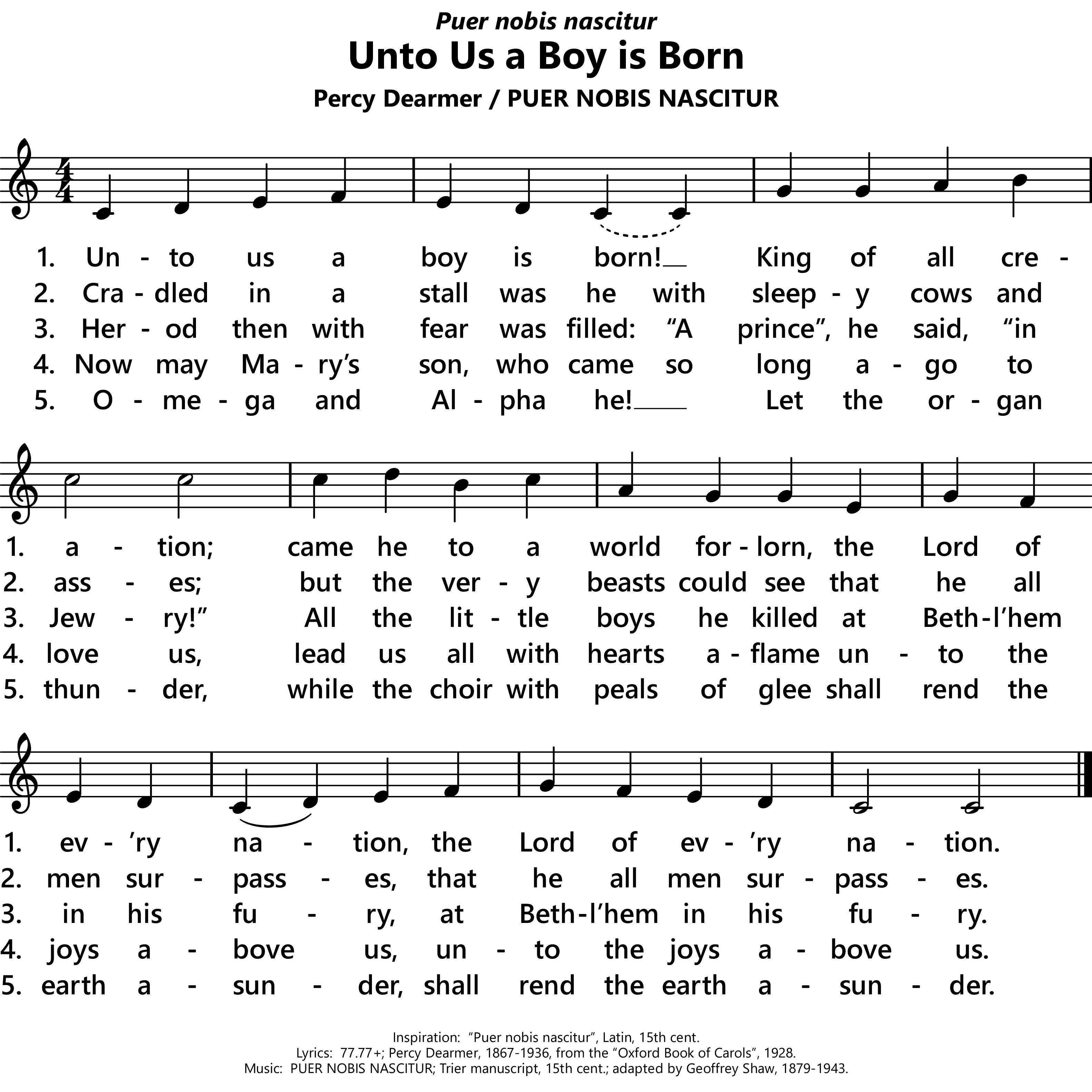 | Lyrics: | Percy Dearmer, 1867-1936, in The Oxford Book of Carols, 1928. |