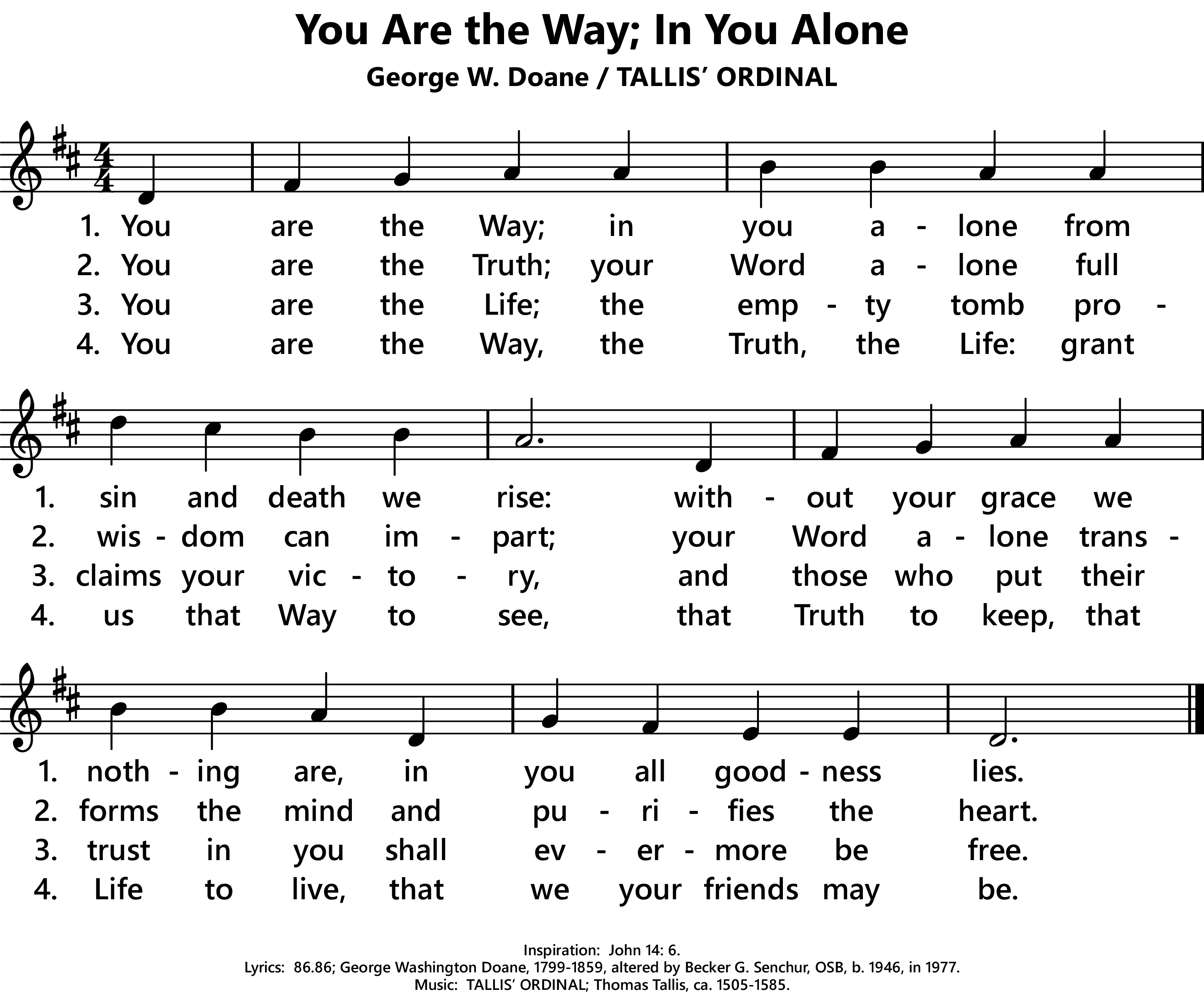 | Worship, 4th ed. lyrics (You Are the Way; through You Alone): lyrics • harmony • score • keyboard • lead • tablet • choir • assembly • slides |
