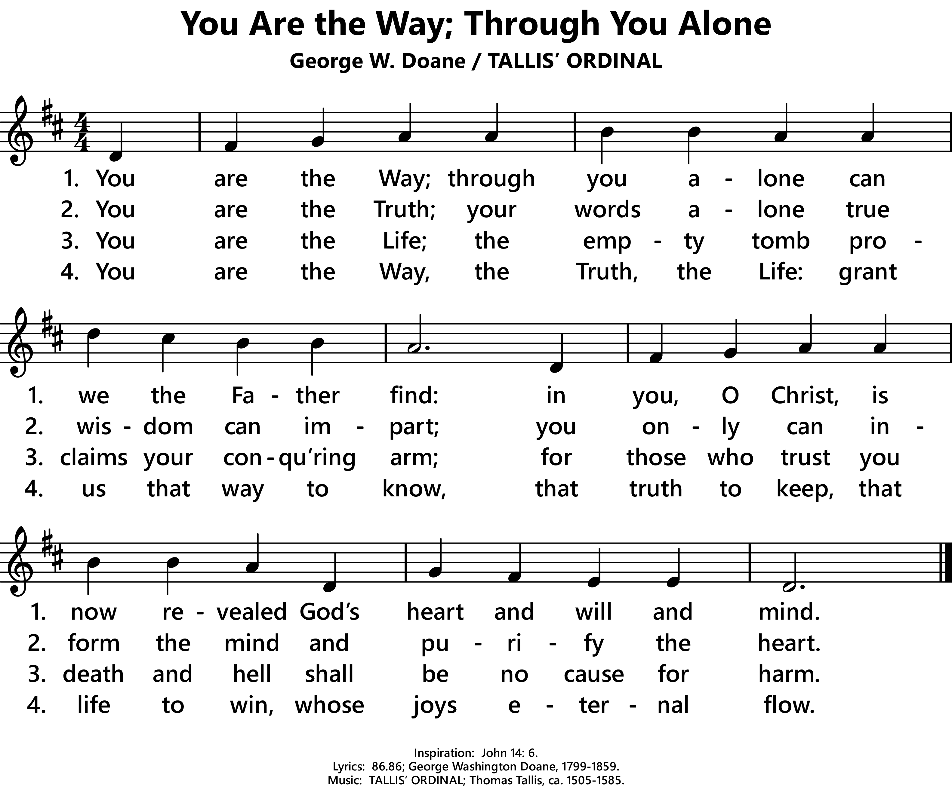| traditional lyrics (Thou Art the Way; to Thee Alone): lyrics • harmony • score • keyboard • lead • tablet • choir • assembly • slides | |