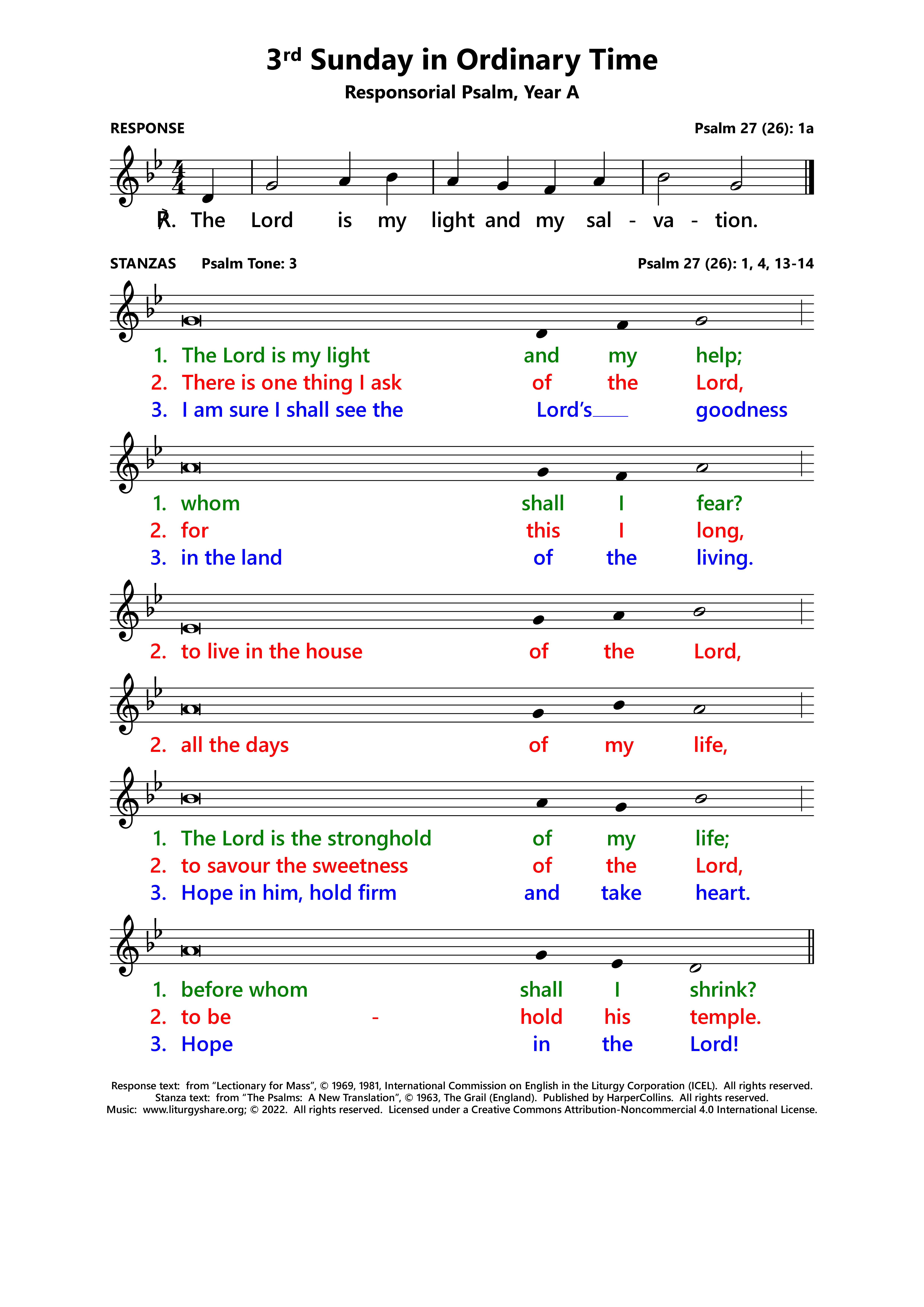 | ℟: | Psalm 27 (26): 1a Dominus illuminatio mea et salus mea. The Lord is my light and my salvation. |