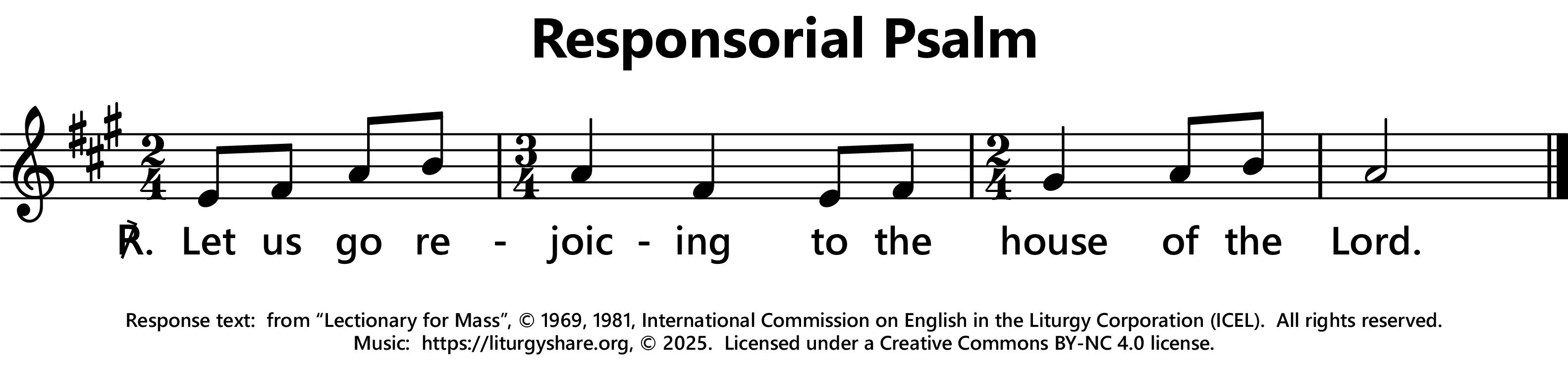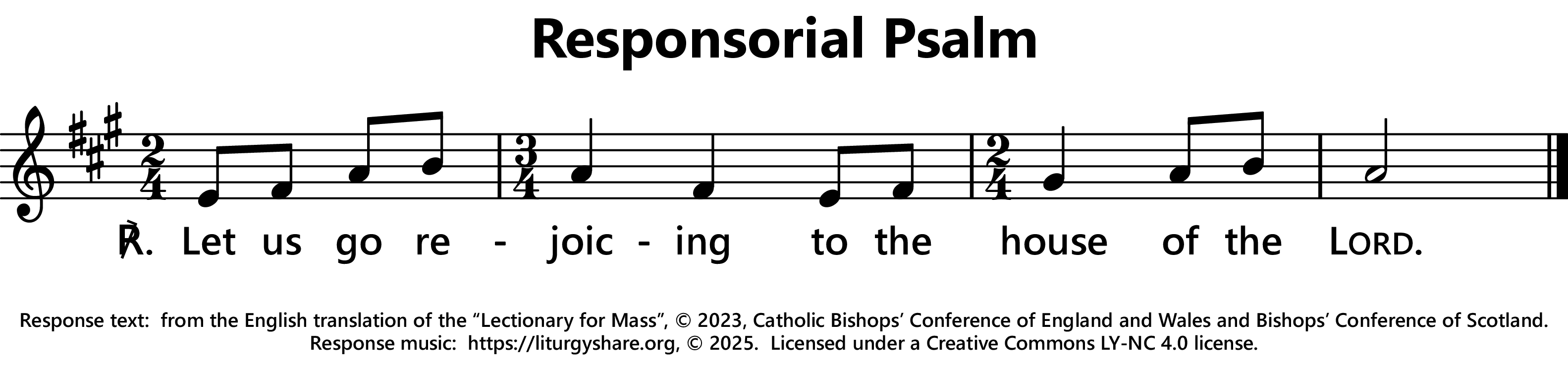 | ℟: | cf. Psalm 122 (121): 1 In domum Domini laetantes ibimus. Let us go rejoicing to the house of the Lord. |
